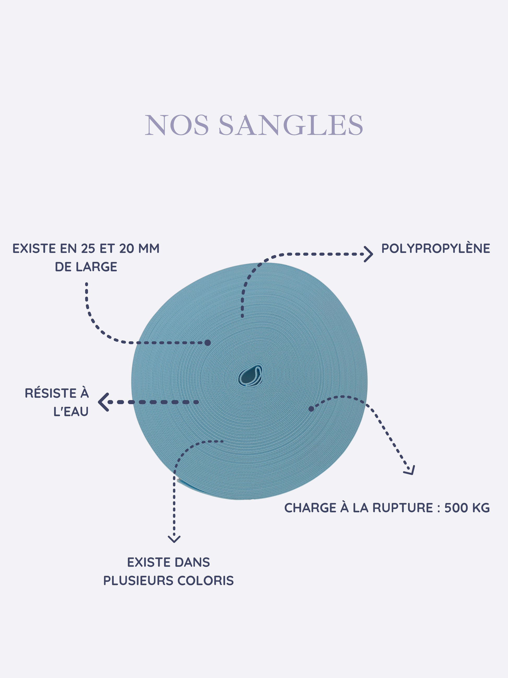 Sangle en polypropylène : solide, résistante à l’usure et légère.